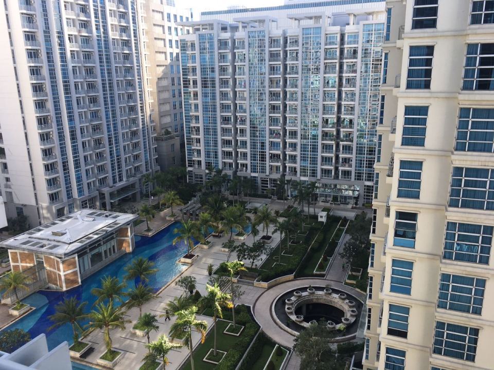 Di Sewa Apartemen CBD Pluit LB 63 M2, semi furnished, tanpa televisi dan kasur, 3 kamar tidur, 2 kamar mandi, listrik 2200 watt, AC 4,hadap timur, view pool dan city, biaya sewa Rp 85.000.000,- per tahun