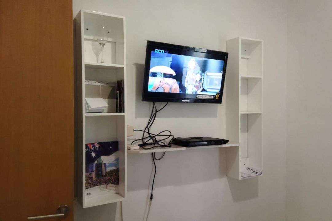 Untuk kamar tidur, tersedia TV, 1 single bed, beserta lemari pakaian.
