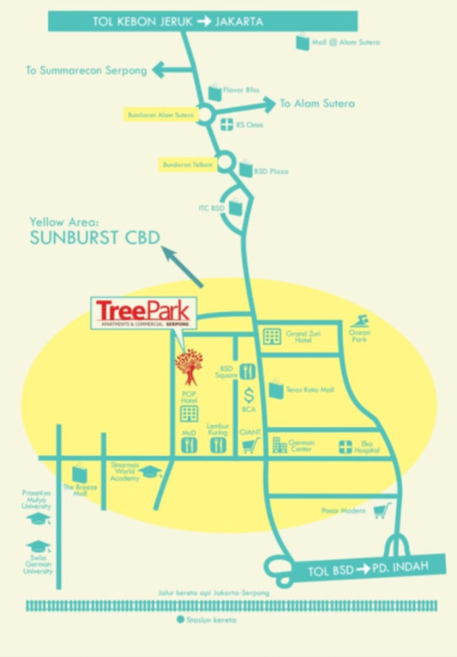 Disewakan tipe studio Apartemen Tree Park bsd