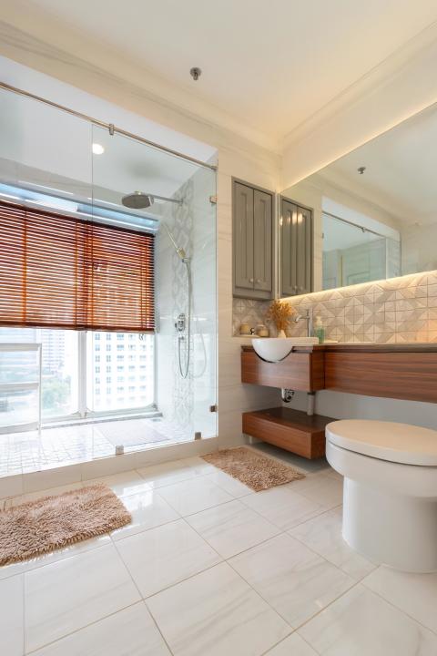 - Luas: 134 m² (dari 3 kamar tidur diubah jadi 2 kamar + walk-in closet).