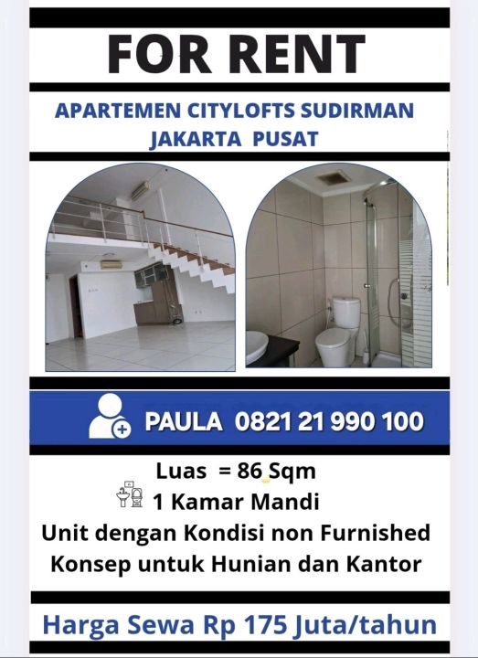 Apartemen City Lofts Sudirman Rp 175 Juta / Tahun Nego Apartemen 0 Kamar Tidur Unfurnished