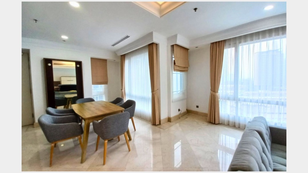 Apartemen terjangkau siap huni di kawasan Sudirman, Jakarta Selatan, 2 KT/1 KM, LB 168m². Harga sewa hemat: 435 Juta /tahun.