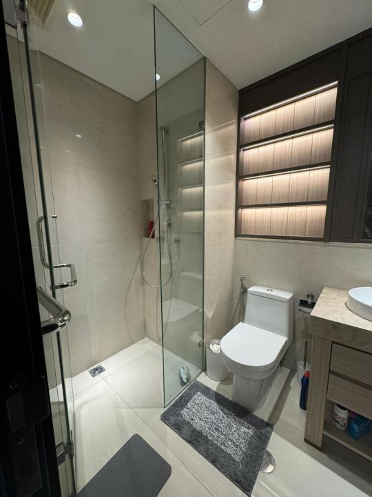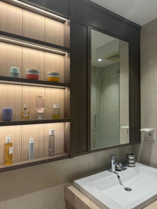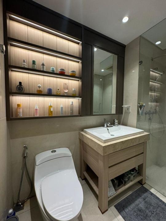 Fasilitas = gym, kolam renang, area komunal