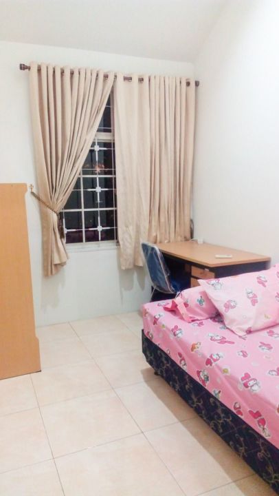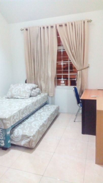2 AC Split, 2 SpringBed, 2 Meja Belajar+lampu, 2 Lemari Baju, TV LED 32 + meja TV, Meja Makan 2 kursi, Sofa, Kulkas 1 pintu, Kipas Angin, Dispenser, Mesin Cuci, Microwave, Rice Cooker, Kompor Gas 1 tungku dan 2 tabung gas hijau. Water Heater, Rak Jemuran, tirai