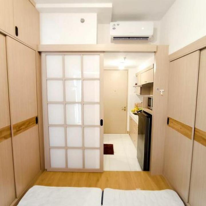 Studio 1 wc dengan ukuran 21 m2 dan listrik 1300W dengan view garden.