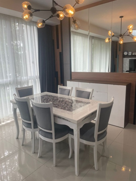 - Furnished (4 AC, yang menempel dinding, sofa, lemari sepatu, lemari kecil di kamar anak, coffee table, 1 water heater, safe deposit box, lemari gudang, kompor belakang, meja gosok, smart door lock)