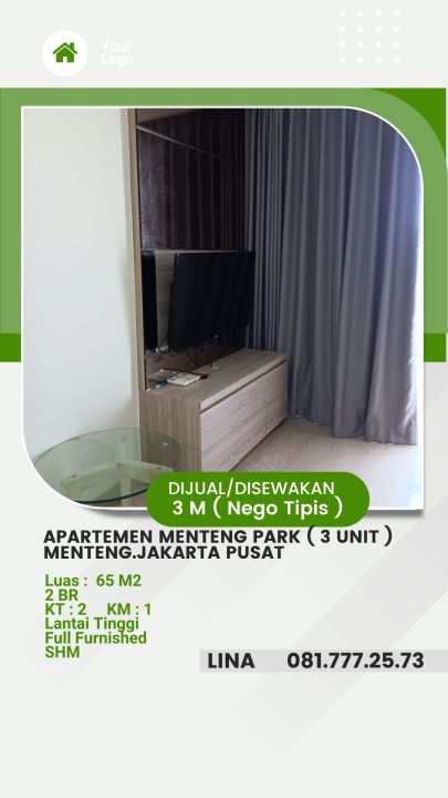 Dijual apartemen premium di lokasi strategis Menteng, Jakarta Pusat. Luas bangunan 64m², 2 KT & 1 KM. Harga luxury: 3 Miliar. Banyak dicari!