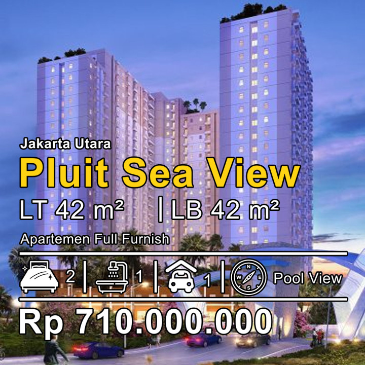 Promo apartemen minimalis di lokasi Pluit, Jakarta Utara, luas bangunan 42m², 2 KT & 1 KM. Harga spesial 710 Juta.