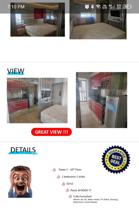 Apartemen minimalis di kawasan Pluit, Jakarta Utara. Luas bangunan 32m², 1 KT, 1 KM. Harga ekonomis hanya 400 Juta. Akses mudah.