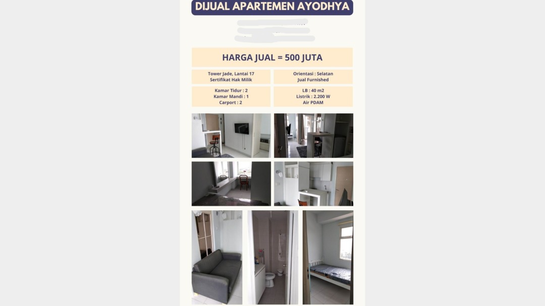 Dijual Apartemen Furnished Ayodhya Tower Jade, Tangerang