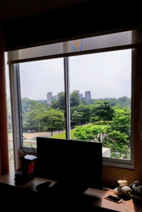 dan balkon hadap ke selatan bisa lihat view sebagian danau dan view taman pohon pohon rindang