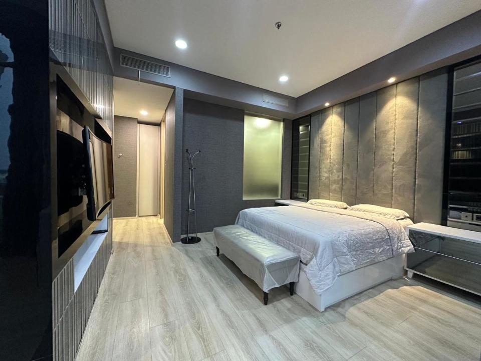 Comfy big bed and spacious walk in closet and ensuite bath room with wide working space (TV 55" + working desk + bedsheet set)