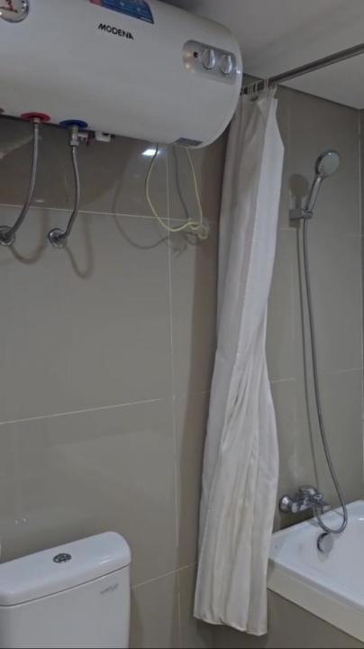 AC, mesin cuci, water heater, tempat tidur, TV, kulkas, meja lemari pakaian, sofa.