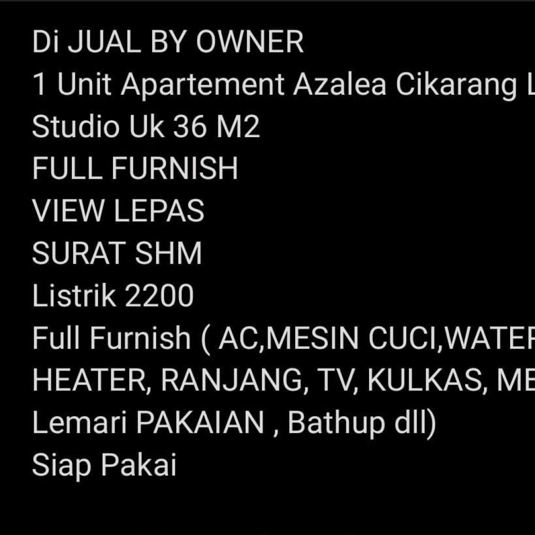 Dijual apartemen Azalea harga BU