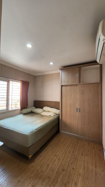 Ukuran 85 meter sebenarnya 3 kamar anak robah kamar tengah jadi 1 jadi gede ,3 kamar keluarga,1 kamar pembantu 3 kamar mandi,balkon langsung lihat kolam renang