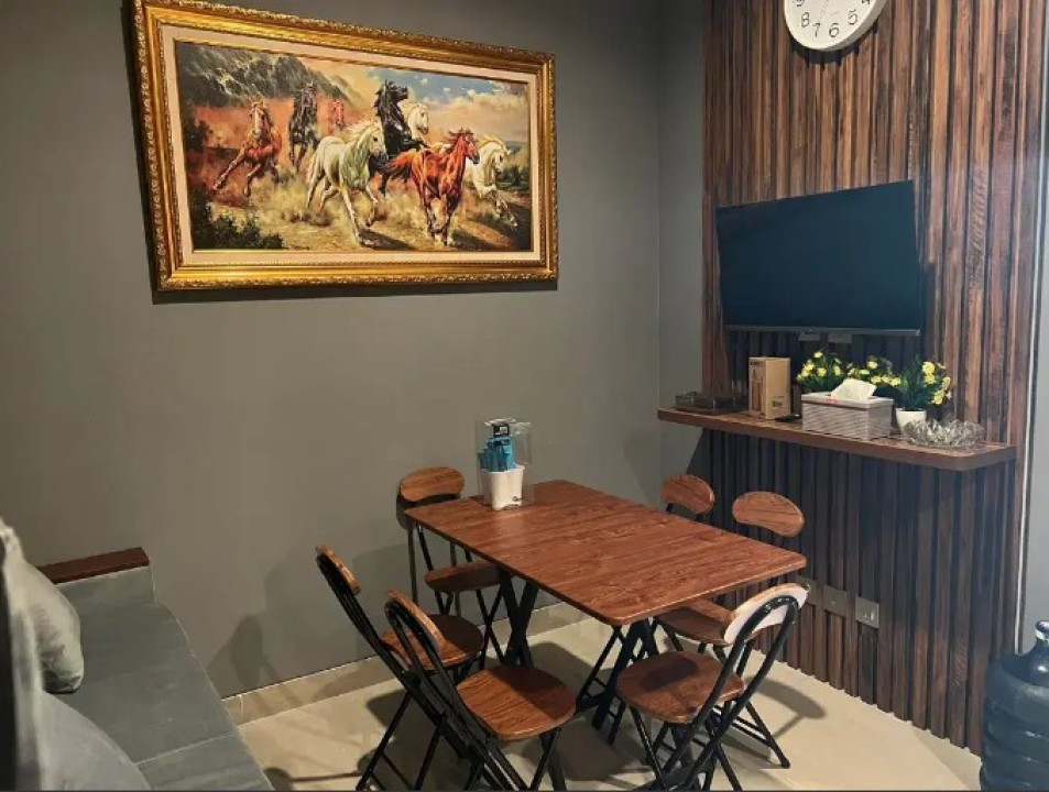 furnished ( TV, SOFABED, KASUR, KULKAS, MESIN CUCI, MICROWAVE, MEJA MAKAN, MEJA BELAJAR, Peralatan Dapur, Alat makan)