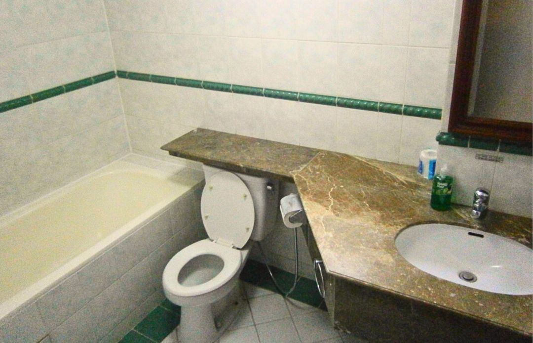 Bath Tub, spacious living room 70 m², 100 L water heater, AC Daikin, King Koil Bed, wardrobe, washing machine, fridge, sofas and dining-table set.