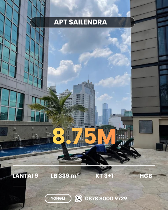 Dijual apartemen eksklusif di kawasan elit Mega Kuningan, Jakarta Selatan, LB 339m², terdiri dari 3 KT & 2 KM. Harga luxury: 8,75 Miliar. Fasilitas premium lengkap.