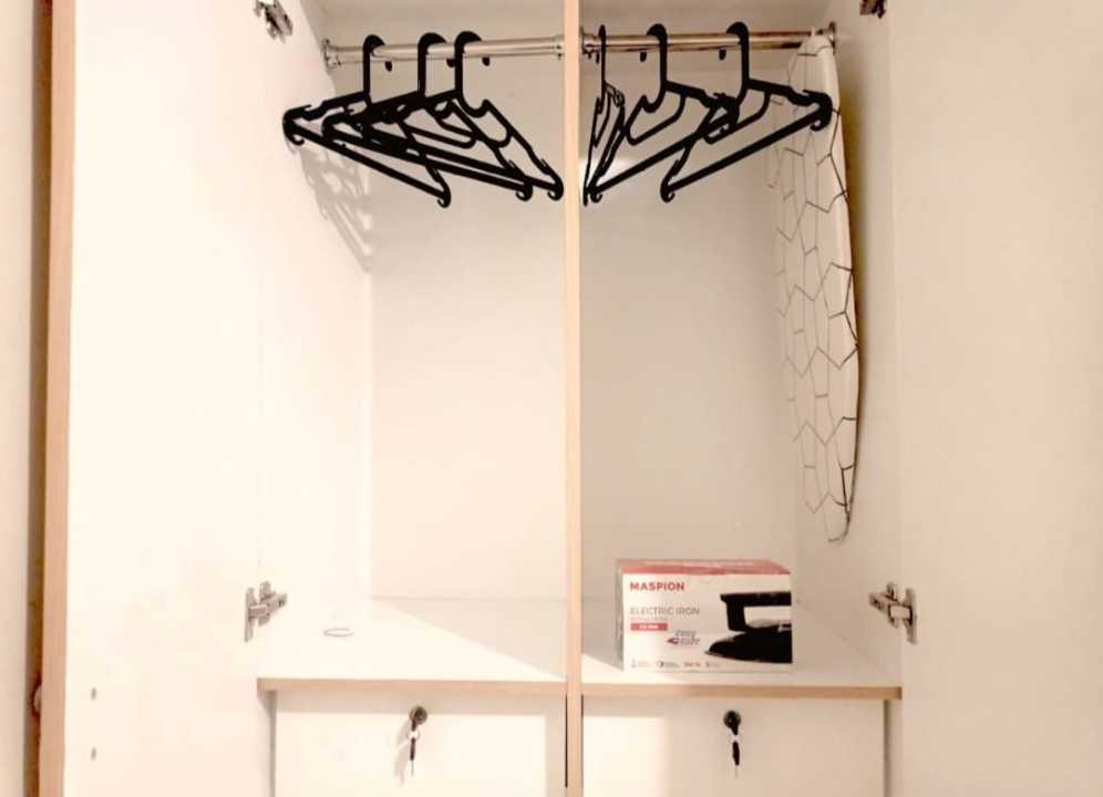 3 Lemari, Gantungan Baju, Setrika, Meja Setrika, Sapu, Pengki Lipat