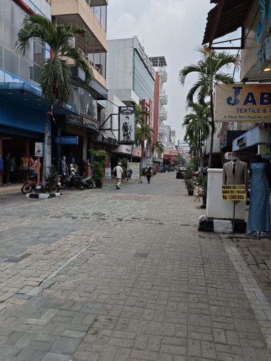 -Ruko terletak di dalam pusat perbelanjaan Pasar Baru, bangunan bentuk L ngantong, lebar muka bangunan 5,7x30 m, lebar belakang 11,7x3 m, total panjang bangunan 33 m-