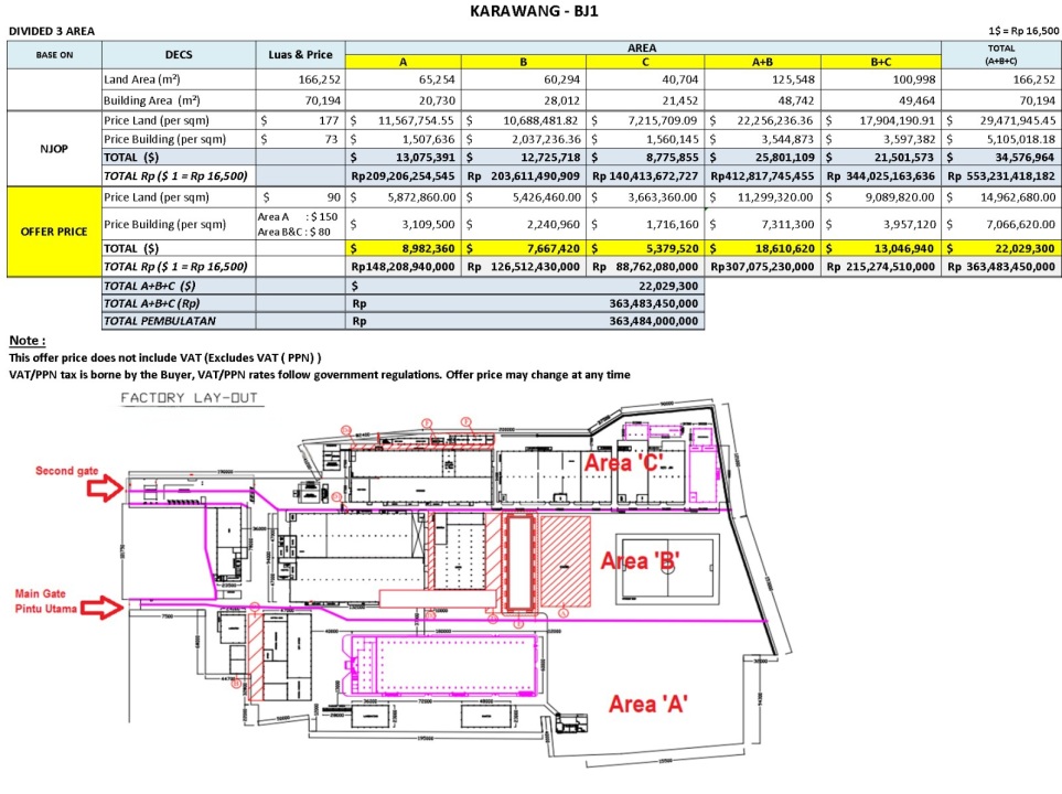 Pabrik 16ha dibawah NJOP Karawang Zona Industri 9km dari Pintu Tol