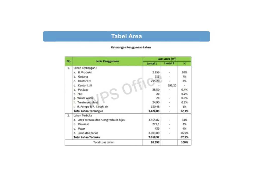 - Luas Bangunan : 3424meter (Gudang + Office)