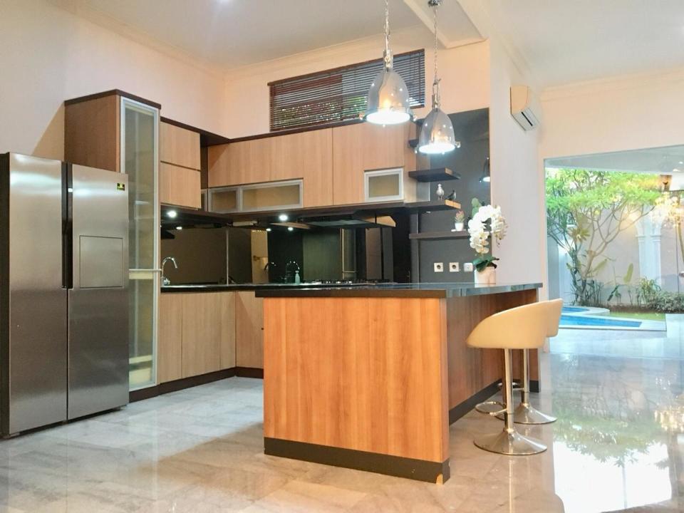 t 680 sqm, lb 800 sqm, 5 BR, 5 bathroom, 2 kitchens, swimming pool, 2 maid rooms + shower room. Fully furnished. Garage for 2 cars + carport for 2 cars. Gated compound of 10 houses. Kemang Ampera area, Near Nord Anglia School, Citos, Tol TB Simatupang