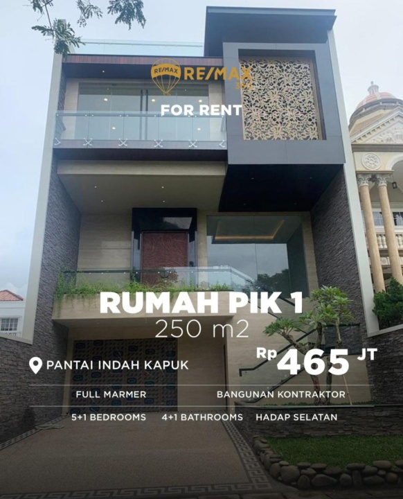Disewakan rumah minimalis di Pantai Indah Kapuk, Jakarta Utara. Hunian praktis dengan 5 KT & 3 KM. Luas tanah 250m², harga sangat terjangkau 465 Juta /tahun. Lingkungan nyaman.