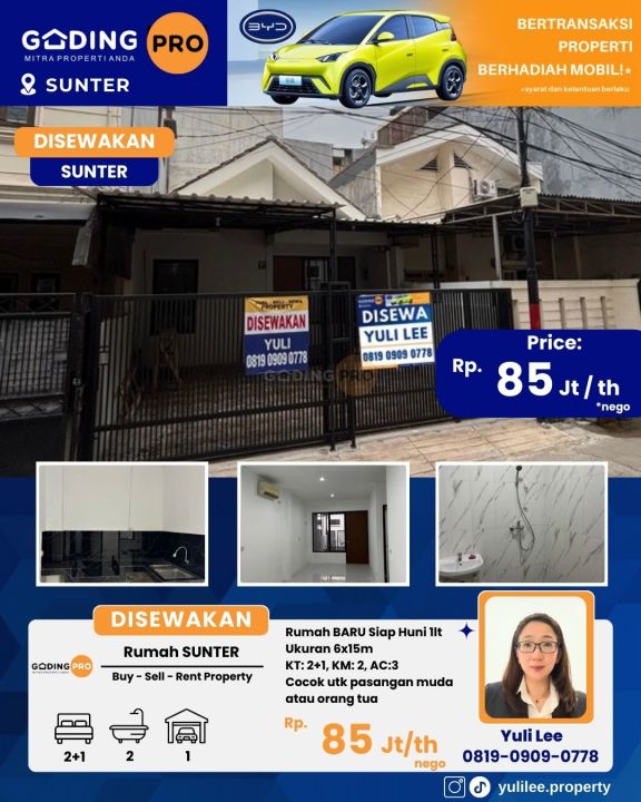 Rumah kontrakan murah di Sunter, Jakarta Utara. Luas tanah 90m², luas bangunan 65m², 2 kamar tidur & 2 kamar mandi. Harga sewa hemat: 70 Juta /tahun. Lokasi strategis.