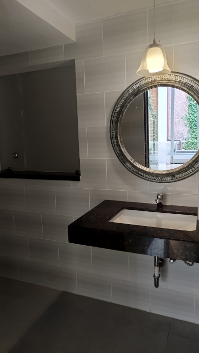 • Guest Powder Room under glass-and-granite staircase