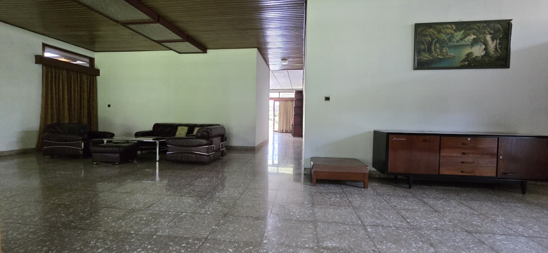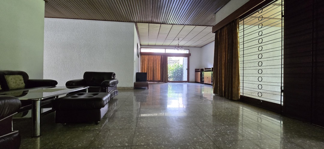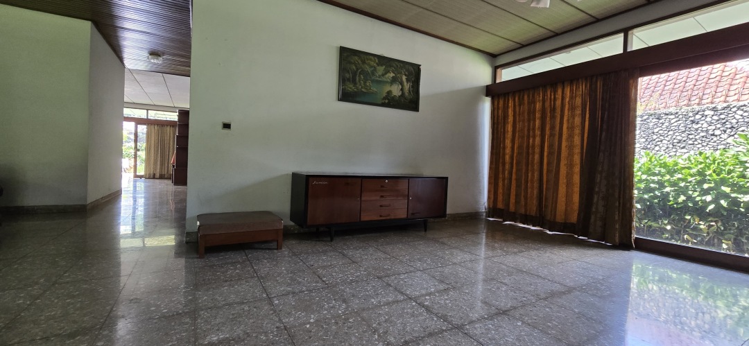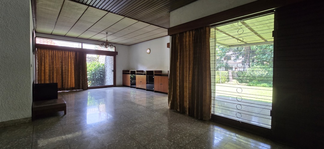 Luas tanah: 1211 m2, 1 lantai, 1 Master Bedroom dengan kamar mandi dalam, 5 Bedroom, 1 kamar mandi, 2 kamar pembantu + 1 kamar mandi pembantu, listrik 3500 watt, 1 line telp