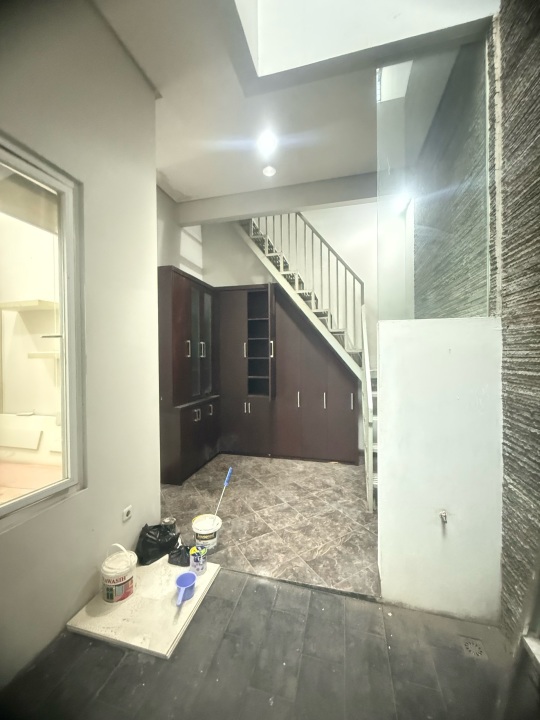 Lantai atas ada satu kamar pembantu + satu kamar mandi pembantu + tempat jemuran baju.