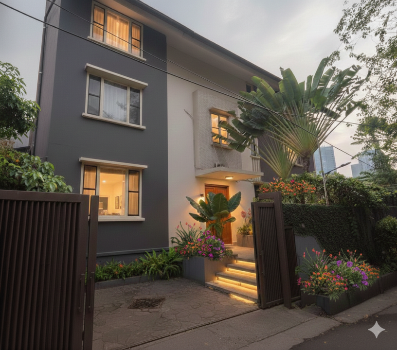 Rumah sewa minimalis di lokasi strategis SCBD, Jakarta Selatan. Terdiri dari 5 KT & 5 KM, luas tanah 400m², bangunan 800m². Harga sewa kompetitif: 1,1 Miliar /tahun.