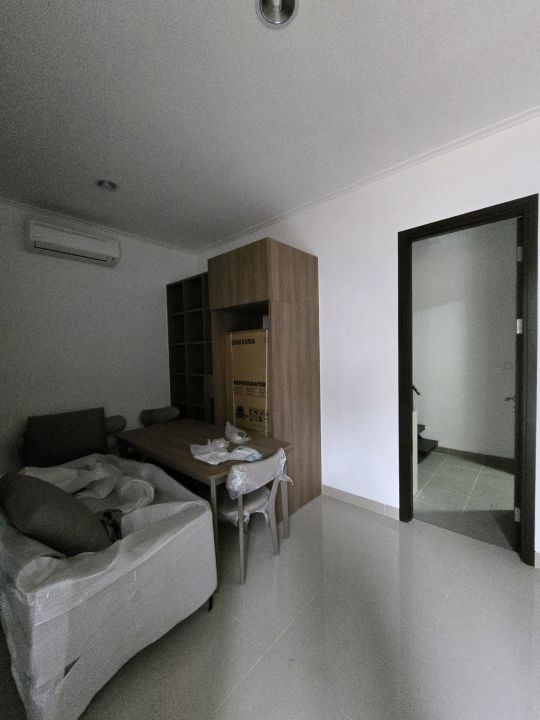 Full furnish lengkap; bed, kitchen set, kulkas, TV, AC, wardrobe