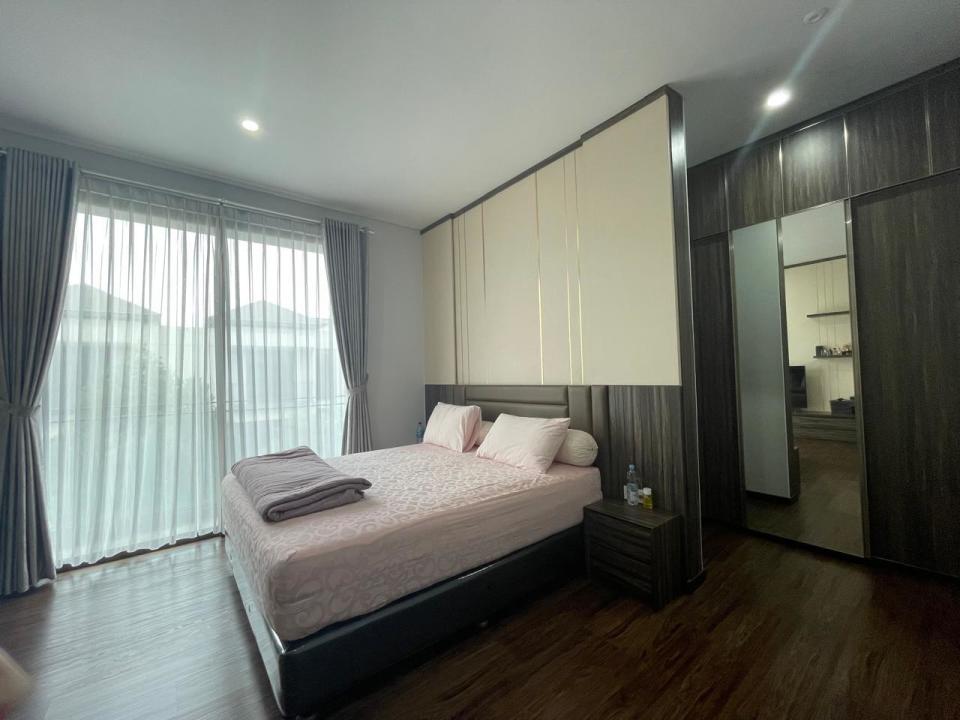 AC, water heater, refrigerator, oven, TV, sofa, dining table+6 chairs, tempat tidur, wardrobe, gordyn.