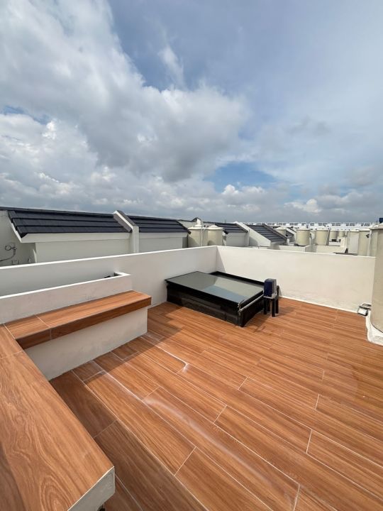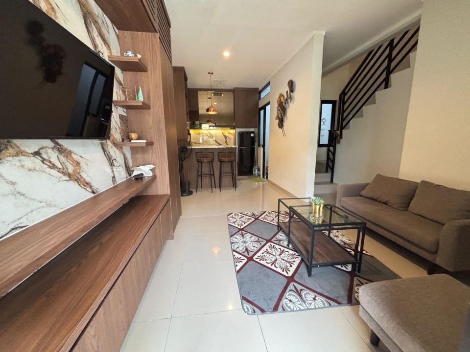 Peralatan : AC 4 unit (1 living room, 3 kamar tidur), tv 55 inch, sofa, kitchen set dan pantry lengkap, dll