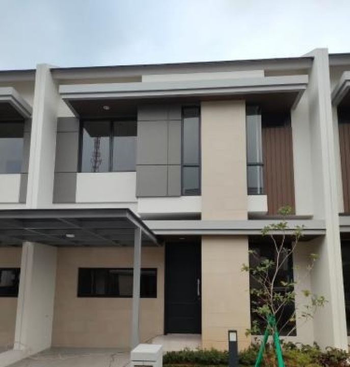 Sewa rumah minimalis di BSD, Tangerang Selatan, LT 84m², LB 84m², 3 KT, harga ekonomis 100 Juta /tahun. Ideal untuk keluarga kecil atau pasangan baru menikah.