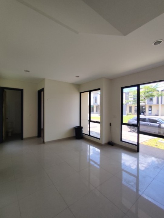 For rent rumah di wilayah yang asri dengan pemandangan perkotaan. Properti 2 lantai bergaya minimalist modern ini berada di lingkungan perumahan/komplek.