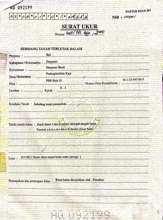 Luas tanah 614 m2