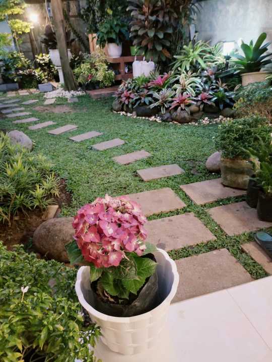 Ada taman di samping dengan pergola cantik
