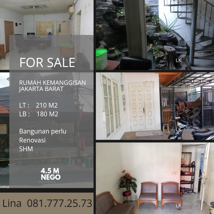 Kesempatan emas memiliki rumah premium di Kemanggisan, Jakarta Barat. Luas tanah 210m², bangunan 180m², KT & KM. Harga terbaik di kelasnya: 4,5 Miliar. Lokasi strategis.