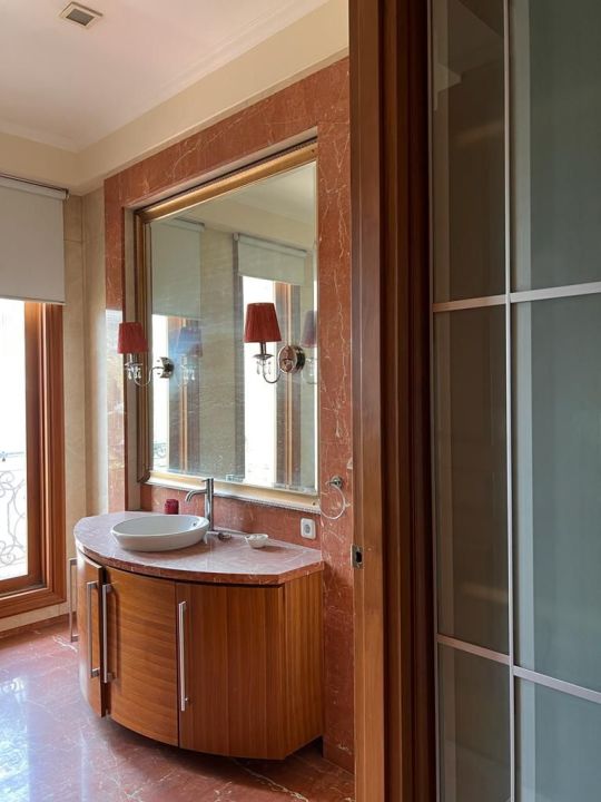 Lantai marmer slab besar dan termasuk WC full marmer