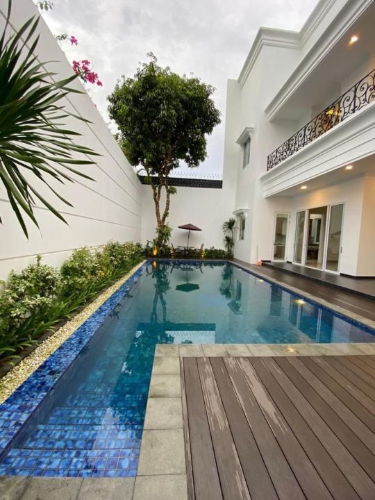 Kolam Renang Dengan Teras Luas Untuk Pesta Di Tepi Kolam Renang