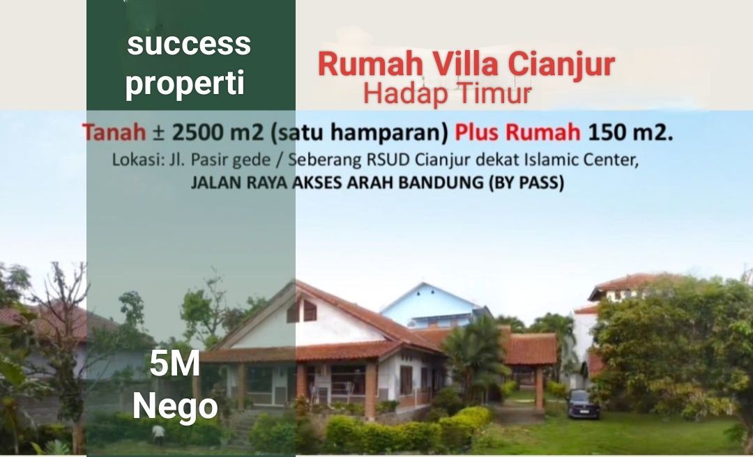 Rumah luxury baru renovasi di Cianjur Kota, Cianjur. Hunian elit dengan 5 kamar tidur dan 4 kamar mandi, LT 2500m², LB 150m². Harga eksklusif: 5 Miliar. Fasilitas lengkap.
