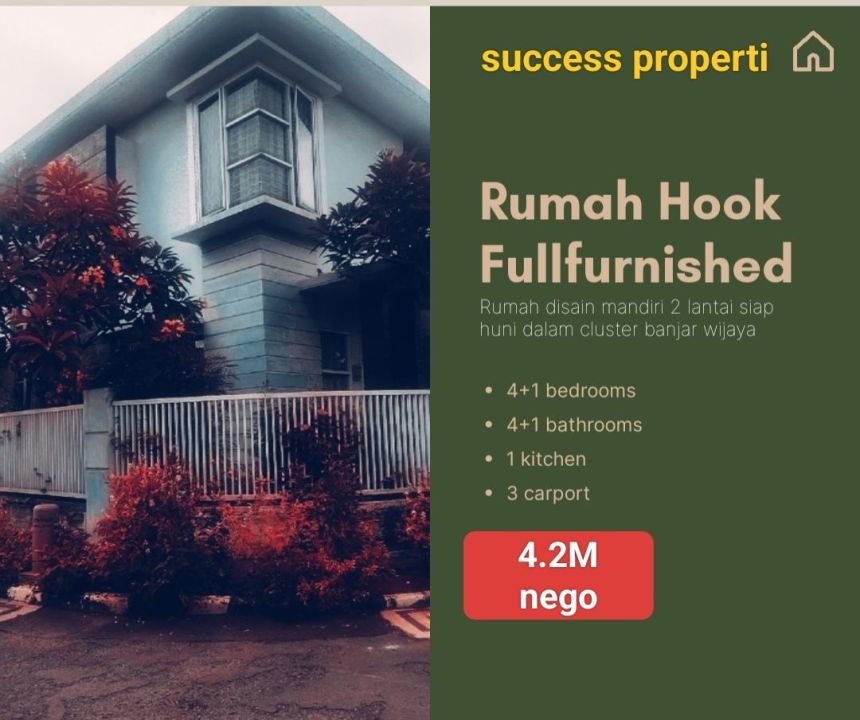 Dijual rumah hook 2 lantai furnished dalam cluster cemara banjarwijaya
