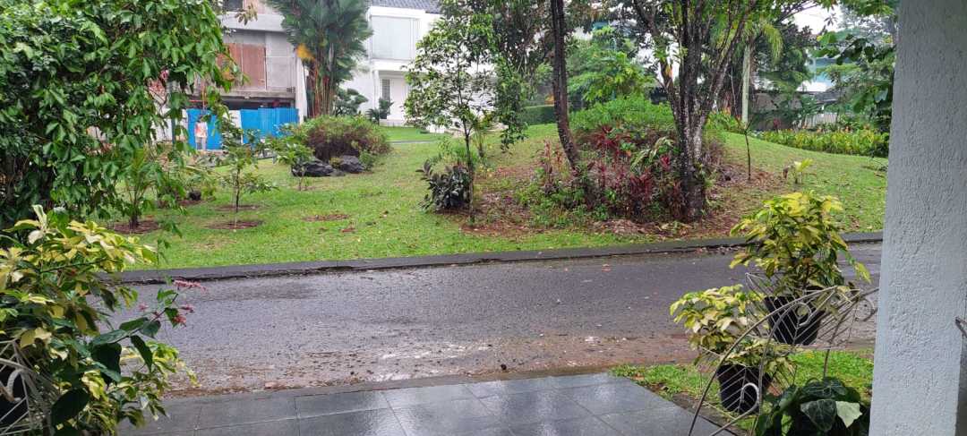 Sangat asri. Kiri kanan kosong, depan taman cukup luas. Tingkat kebisingan rendah. Jalan depan bisa dua arah.