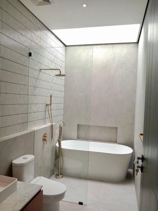 - Luxury Bathroom feature : Marble Vanities & Cabinetry, Frameless Shower Screen, Brushed Gold Fittings, Toto Touchless Toilet, Freestanding Bath & Skylight