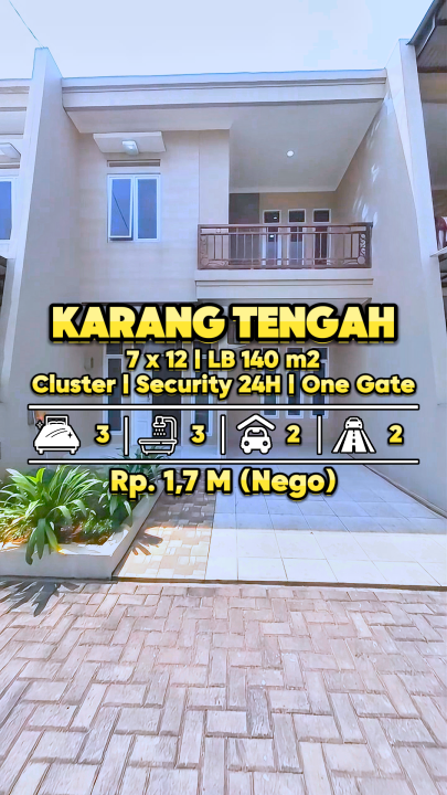 Rumah keluarga di lokasi strategis Karang Tengah, Tangerang. Punya 3 KT dan 3 KM, LT 84m², LB 140m². Harga terbaik 1,69 Miliar. Dekat fasilitas publik.