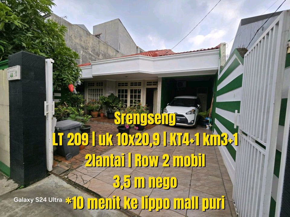 Dijual rumah mewah di kawasan elit Srengseng, Jakarta Barat. Dengan desain elegan, LT 209m², LB 160m², terdiri dari 4 KT & 2 KM. Harga premium: 3,7 Miliar. Akses mudah.