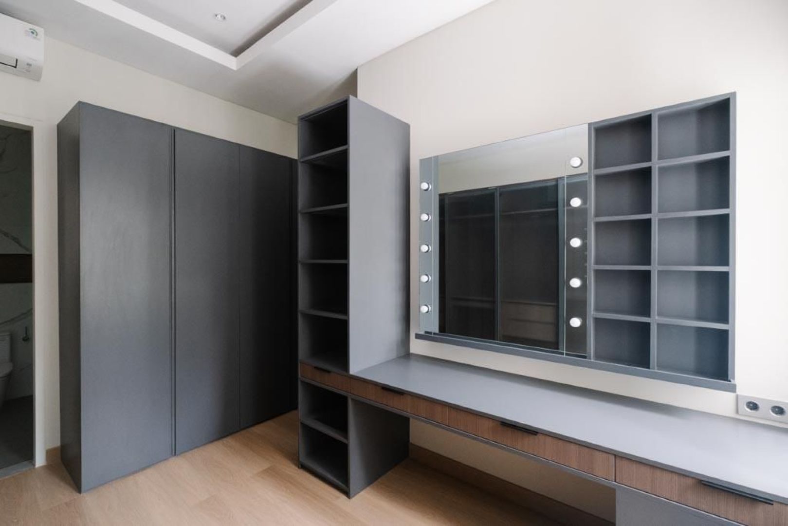 - Custom seluruh cabinet dan dipan tempat tidur juga di  ruang tamu, walk in closet dapur, ruang kerja, ruang entertainment dll